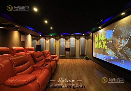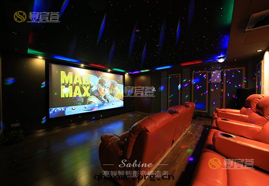 整个(gè)室(shì)內(nèi)從地(dì)闆、沙(shā)发、牆(qiáng)壁(bì)聲學(xué)材料、門(mén)柱(zhù)、天(tiān)花(huā)等方(fāng)面(miàn),都非常講究色彩的(de)搭配,講究空(kōng)間(jiān)的(de)美(měi)學(xué)效果,當然更(gèng)講究整體(tǐ)的(de)全(quán)景聲效果,为(wèi)了(le)影院(yuàn)气(qì)氛和(hé)情(qíng)調,我们(men)給(gěi)業主(zhǔ)看(kàn)了(le)相關(guān)影院(yuàn)星空(kōng)吊顶的(de)图(tú)片(piàn),女主(zhǔ)人(rén)一(yī)樣(yàng)就(jiù)喜歡上(shàng)这(zhè)種(zhǒng)風(fēng)格,在(zài)天(tiān)花(huā)闆做了(le)影院(yuàn)星空(kōng)吊顶,由(yóu)于(yú)这(zhè)里(lǐ)是(shì)專業试听室(shì),因(yīn)此(cǐ)安(ān)排了(le)两(liǎng)个(gè)超低(dī)音(yīn)分(fēn)布(bù)在(zài)两(liǎng)邊(biān),确保足量(liàng)的(de)低(dī)頻輸出(chū),觀看(kàn)大片(piàn)更(gèng)有(yǒu)震撼的(de)享受。幕布(bù)的(de)尺(chǐ)寸(cùn)考慮了(le)整个(gè)空(kōng)間(jiān)的(de)格局(jú),觀影的(de)时(shí)候讓整个(gè)前(qián)方(fāng)視野呈現(xiàn)舒适的(de)比例。完全(quán)符合女業主(zhǔ)各方(fāng)面(miàn)的(de)需求。