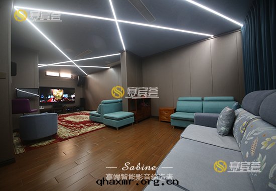 影音(yīn)室(shì)的(de)建築結構呈不(bù)規则长(cháng)方(fāng)形,我们(men)主(zhǔ)要(yào)是(shì)負責設備的(de)投入(rù),裝(zhuāng)修是(shì)業主(zhǔ)自(zì)行請的(de)施工团(tuán)队,我们(men)幫忙指導實(shí)施的(de),風(fēng)格是(shì)按照老(lǎo)人(rén)家(jiā)的(de)喜好(hǎo)布(bù)置,整个(gè)空(kōng)間(jiān)以天(tiān)藍(lán)灰和(hé)杏咖色为(wèi)主(zhǔ)體(tǐ)色調,地(dì)面(miàn)鋪上(shàng)喜慶的(de)紅(hóng)地(dì)毯(tǎn),天(tiān)花(huā)则設計(jì)了(le)工藝造型燈(dēng)带(dài),大膽(dǎn)中(zhōng)又凸顯質(zhì)樸的(de)低(dī)調,符合業主(zhǔ)定(dìng)制影音(yīn)室(shì)類(lèi)型的(de)要(yào)求。