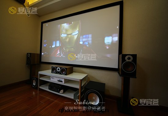 由(yóu)于(yú)影音(yīn)室(shì)旁邊(biān)有(yǒu)落(là)地(dì)陽台(tái),遮光(guāng)性(xìng)能(néng)差,所(suǒ)以相对(duì)来(lái)说(shuō)对(duì)投影機(jī)和(hé)幕布(bù)的(de)要(yào)求較高(gāo),日(rì)本(běn)爱(ài)普生(shēng)家(jiā)用(yòng)型投影機(jī)的(de)選擇,完美(měi)勝任这(zhè)一(yī)問(wèn)題(tí),即使在(zài)白(bái)天(tiān)投影效果也(yě)OK,當然,在(zài)全(quán)黑(hēi)的(de)模式下(xià)觀影效果更(gèng)棒,另(lìng)外(wài)業主(zhǔ)要(yào)求大幕布(bù),好(hǎo)在(zài)房(fáng)間(jiān)的(de)长(cháng)度(dù)夠,大幕的(de)同时(shí)又不(bù)影響觀影的(de)的(de)舒适感。器材根(gēn)據(jù)測量(liàng)擺放(fàng)在(zài)准确的(de)聲场(chǎng)方(fāng)位(wèi),讓業主(zhǔ)足不(bù)出(chū)戶都體(tǐ)验(yàn)到(dào)比電(diàn)影院(yuàn)還(huán)震撼的(de)電(diàn)影享受。