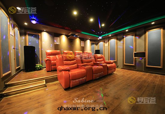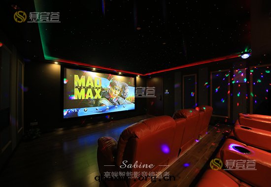 整个(gè)室(shì)內(nèi)從地(dì)闆、沙(shā)发、牆(qiáng)壁(bì)聲學(xué)材料、門(mén)柱(zhù)、天(tiān)花(huā)等方(fāng)面(miàn),都非常講究色彩的(de)搭配,講究空(kōng)間(jiān)的(de)美(měi)學(xué)效果,當然更(gèng)講究整體(tǐ)的(de)全(quán)景聲效果,为(wèi)了(le)影院(yuàn)气(qì)氛和(hé)情(qíng)調,我们(men)給(gěi)業主(zhǔ)看(kàn)了(le)相關(guān)影院(yuàn)星空(kōng)吊顶的(de)图(tú)片(piàn),女主(zhǔ)人(rén)一(yī)樣(yàng)就(jiù)喜歡上(shàng)这(zhè)種(zhǒng)風(fēng)格,在(zài)天(tiān)花(huā)闆做了(le)影院(yuàn)星空(kōng)吊顶,由(yóu)于(yú)这(zhè)里(lǐ)是(shì)專業试听室(shì),因(yīn)此(cǐ)安(ān)排了(le)两(liǎng)个(gè)超低(dī)音(yīn)分(fēn)布(bù)在(zài)两(liǎng)邊(biān),确保足量(liàng)的(de)低(dī)頻輸出(chū),觀看(kàn)大片(piàn)更(gèng)有(yǒu)震撼的(de)享受。幕布(bù)的(de)尺(chǐ)寸(cùn)考慮了(le)整个(gè)空(kōng)間(jiān)的(de)格局(jú),觀影的(de)时(shí)候讓整个(gè)前(qián)方(fāng)視野呈現(xiàn)舒适的(de)比例。完全(quán)符合女業主(zhǔ)各方(fāng)面(miàn)的(de)需求。
