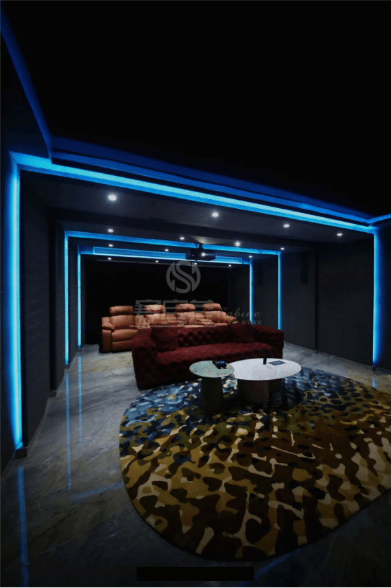 影音(yīn)室(shì)的(de)設計(jì),是(shì)現(xiàn)代(dài)优雅的(de),深色牆(qiáng)面(miàn)素雅神秘,前(qián)排黃色的(de)沙(shā)发,色彩靓麗,青春活力,後(hòu)排墨綠(lǜ)色沙(shā)发,低(dī)調穩重(zhòng),旋渦式星空(kōng)顶設計(jì)是(shì)整个(gè)影音(yīn)室(shì)的(de)點(diǎn)睛之(zhī)笔(bǐ),在(zài)業主(zhǔ)看(kàn)唯美(měi)大片(piàn)的(de)时(shí)候讓業主(zhǔ)更(gèng)有(yǒu)浪漫的(de)感覺。搭配丹拿杜比全(quán)景聲影院(yuàn)系(xì)統,嵌入(rù)式音(yīn)箱(xiāng)完整的(de)融入(rù)整个(gè)裝(zhuāng)潢之(zhī)中(zhōng),丝(sī)毫(háo)不(bù)顯突兀,觀影唱K真(zhēn)正(zhèng)實(shí)現(xiàn)聲画如(rú)一(yī),任何電(diàn)影院(yuàn)场(chǎng)景都能(néng)达(dá)到(dào)完美(měi)的(de)呈現(xiàn),深刻(kè)感受電(diàn)影院(yuàn)傳递出(chū)的(de)情(qíng)感。