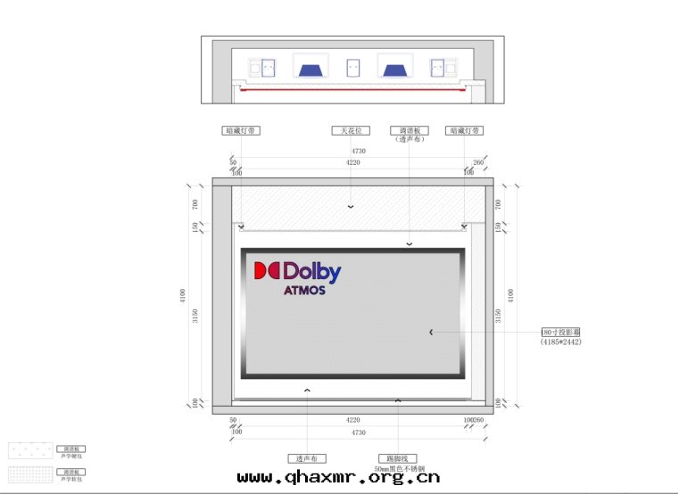 一(yī)、考慮到(dào)常規影音(yīn)設備会(huì)破壞造型完成(chéng)度(dù),投影幕特(tè)意(yì)采用(yòng)了(le)透聲画框幕布(bù),同时(shí)将音(yīn)箱(xiāng)都隐藏起(qǐ)来(lái),使整个(gè)影音(yīn)室(shì)前(qián)牆(qiáng)造型美(měi)觀,干(gàn)净簡潔,使人(rén)只(zhī)聞其(qí)聲,不(bù)見(jiàn)其(qí)形!