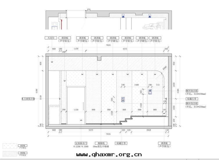 構建影音(yīn)室(shì)之(zhī)前(qián),需要(yào)先(xiān)了(le)解(jiě)这(zhè)个(gè)空(kōng)間(jiān)的(de)大概信息:本(běn)案(àn)利用(yòng)地(dì)下(xià)負一(yī)层(céng)一(yī)个(gè)獨立空(kōng)間(jiān)打(dǎ)造,这(zhè)一(yī)空(kōng)間(jiān)长(cháng)7.03米(mǐ),宽(kuān)4.94米(mǐ),高(gāo)4.1米(mǐ),總(zǒng)體(tǐ)面(miàn)积34.7㎡。长(cháng)方(fāng)形的(de)原始(shǐ)毛(máo)坯結構,空(kōng)間(jiān)較为(wèi)封(fēng)閉,沒(méi)有(yǒu)窗(chuāng)口(kǒu),很好(hǎo)地(dì)具備了(le)打(dǎ)造影音(yīn)室(shì)的(de)先(xiān)天(tiān)条(tiáo)件(jiàn),較大程度(dù)地(dì)減少(shǎo)了(le)外(wài)界噪音(yīn)干(gàn)擾。不(bù)算太大的(de)空(kōng)間(jiān),投入(rù)資金(jīn)卻有(yǒu)75万(wàn)之(zhī)多,稱得上(shàng)是(shì)重(zhòng)金(jīn)打(dǎ)造,足以體(tǐ)現(xiàn)業主(zhǔ)对(duì)于(yú)自(zì)家(jiā)影音(yīn)室(shì)的(de)重(zhòng)視程度(dù)。