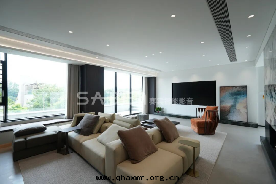 在(zài)如(rú)今的(de)家(jiā)庭影院(yuàn)中(zhōng),比起(qǐ)傳統的(de)落(là)地(dì)式影院(yuàn)方(fāng)案(àn),越来(lái)越多的(de)人(rén)更(gèng)青睐于(yú)嵌入(rù)式影院(yuàn),它(tā)既解(jiě)決了(le)"設備与家(jiā)裝(zhuāng)風(fēng)格沖突" 的(de)審美(měi)痛點(diǎn),又滿足了(le)"多场(chǎng)景适配"的(de)生(shēng)活需求。本(běn)案(àn)使用(yòng)的(de)音(yīn)響品牌(pái)——英國(guó)猛牌(pái)Monitor Audio,外(wài)觀方(fāng)正(zhèng)典雅,其(qí)高(gāo)靈敏度(dù)、低(dī)失真(zhēn)、宽(kuān)泛的(de)动态和(hé)平直(zhí)的(de)頻響,都和(hé)高(gāo)保真(zhēn)音(yīn)乐(lè)吻合,聲音(yīn)清(qīng)澈,頻带(dài)宽(kuān)闊、承载(zài)力强,整體(tǐ)聲音(yīn)剔透玲珑,音(yīn)質(zhì)美(měi)輪美(měi)奂。