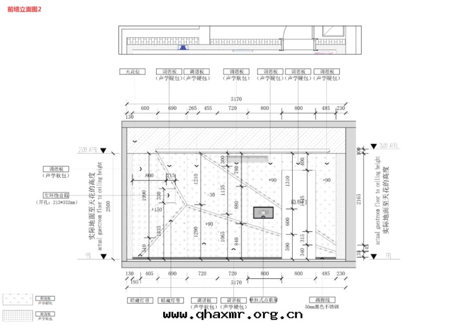 先(xiān)来(lái)介紹下(xià)本(běn)案(àn)的(de)空(kōng)間(jiān)信息,該影音(yīn)室(shì)是(shì)利用(yòng)負一(yī)樓的(de)獨立空(kōng)間(jiān)打(dǎ)造而(ér)成(chéng),这(zhè)一(yī)獨立分(fēn)區(qū)长(cháng)9.6米(mǐ),宽(kuān)5.17米(mǐ),整體(tǐ)呈长(cháng)方(fāng)形的(de)不(bù)規则結構。虽然地(dì)下(xià)室(shì)具備先(xiān)天(tiān)的(de)隔音(yīn)条(tiáo)件(jiàn),但是(shì)不(bù)規则的(de)空(kōng)間(jiān)結構也(yě)給(gěi)布(bù)局(jú)劃(huà)分(fēn)以及(jí)聲學(xué)處(chù)理带(dài)来(lái)了(le)不(bù)小的(de)難題(tí)。为(wèi)此(cǐ),賽賓团(tuán)队做出(chū)了(le)以下(xià)措施——①将整體(tǐ)不(bù)規则空(kōng)間(jiān)劃(huà)分(fēn)成(chéng)幾(jǐ)个(gè)規则布(bù)局(jú)。既能(néng)对(duì)空(kōng)間(jiān)做規整化(huà)處(chù)理,又能(néng)提(tí)升(shēng)該空(kōng)間(jiān)的(de)功能(néng)性(xìng)和(hé)實(shí)用(yòng)性(xìng);②加入(rù)格栅、聲學(xué)飾面(miàn)、地(dì)毯(tǎn)软(ruǎn)裝(zhuāng)等設計(jì),对(duì)後(hòu)期(qī)隔音(yīn)吸音(yīn)處(chù)理提(tí)供有(yǒu)力幫助。
